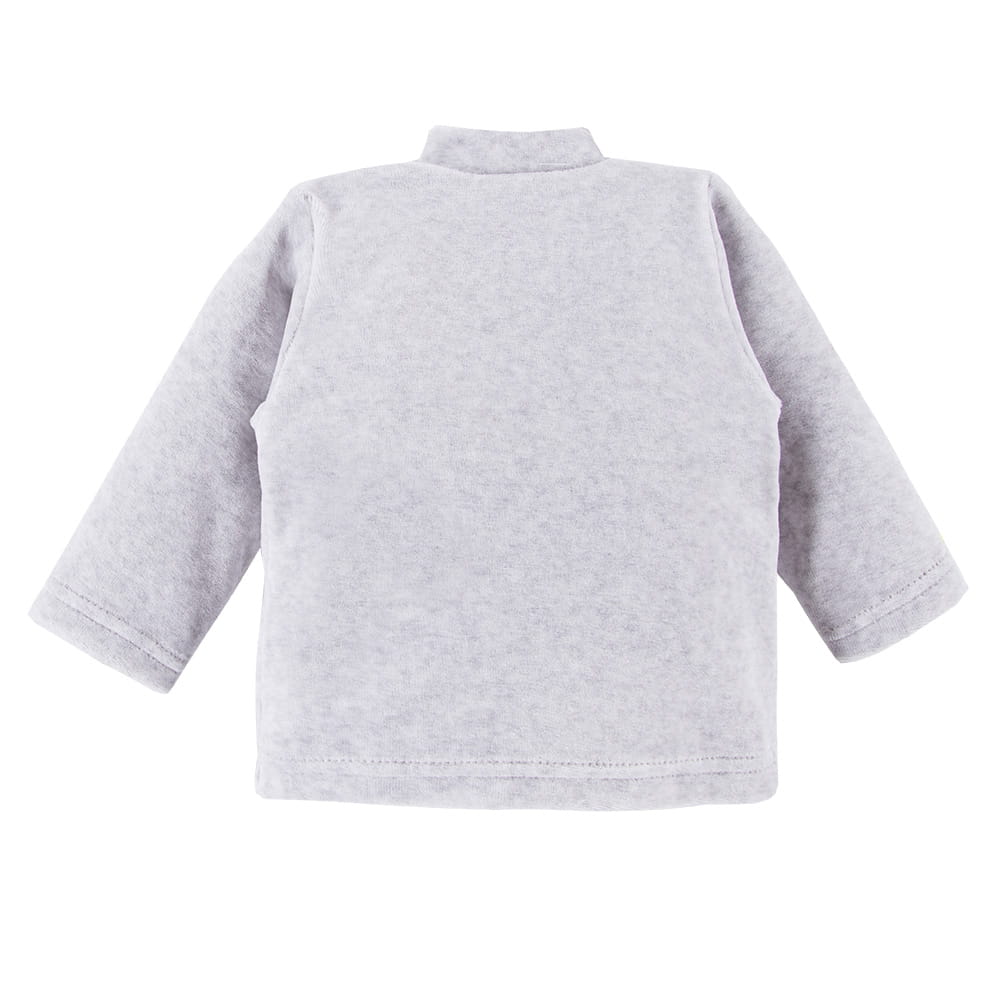 Dětská velurová souprava z kolekce Baby Love, složená ze spacího overalu a kabátku, je ideální volbou pro novorozence a kojence. Šedá barva v kombinaci s roztomilou výšivkou zebry dodává soupravě jemný, přátelský a hravý charakter.