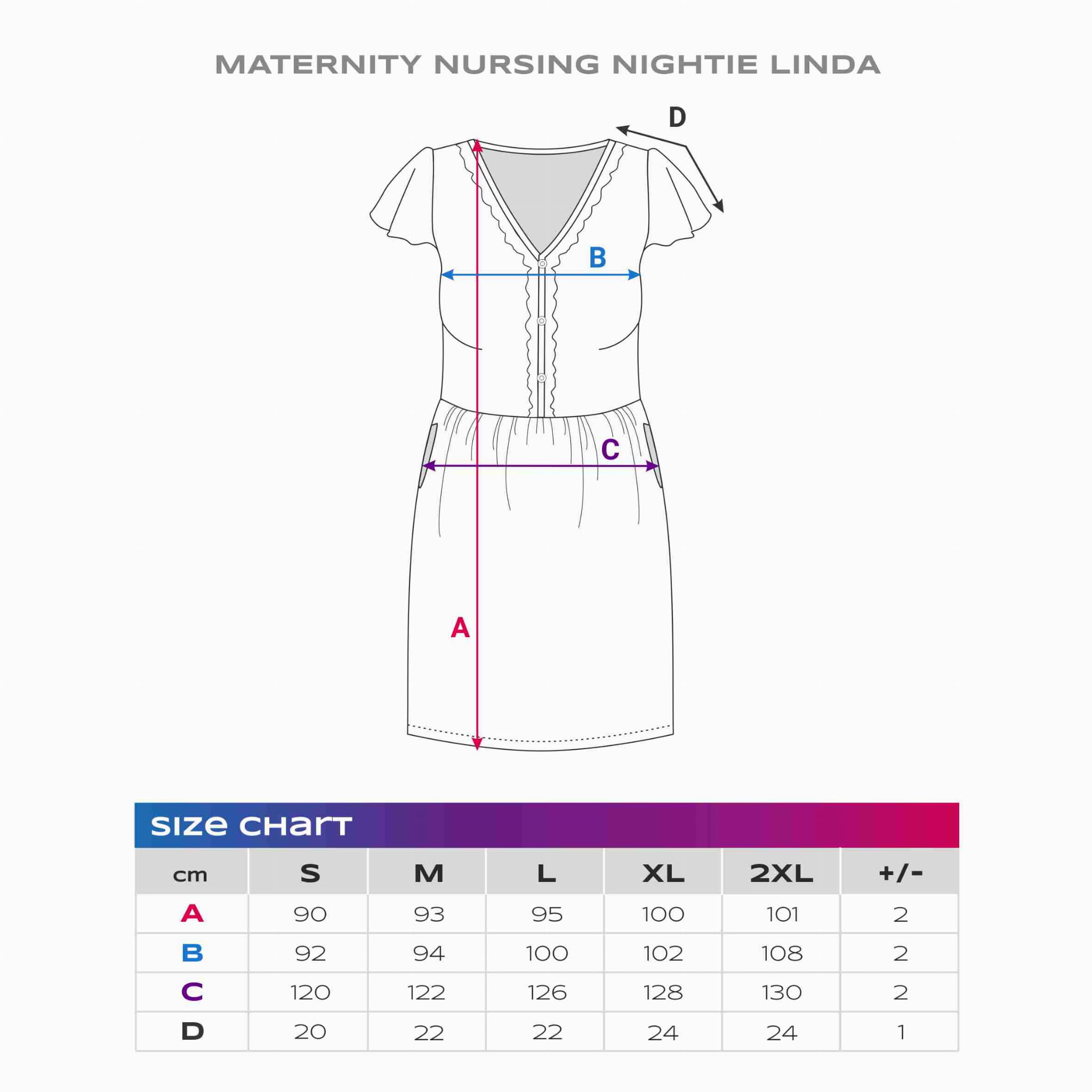 - Dostupná ve velikostech od S do XXL – pohodlná po celé těhotenství i po porodu.