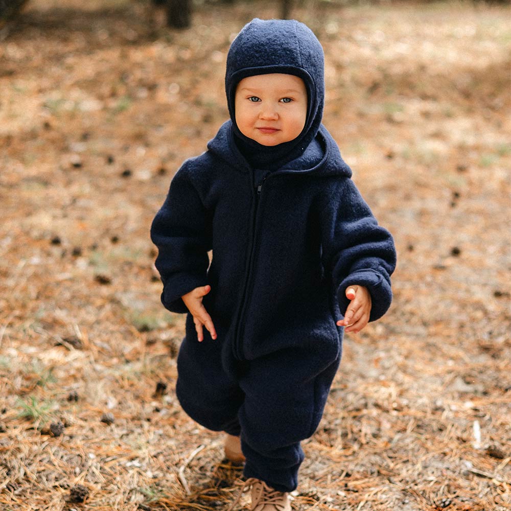 Tmavě modrá dětská kombinéza z merino fleecu – Kolekce Merino