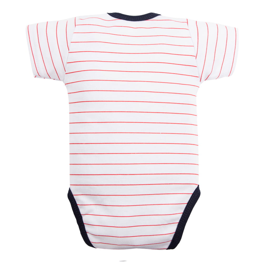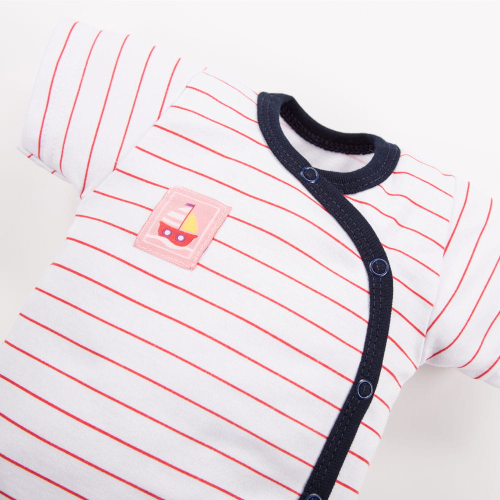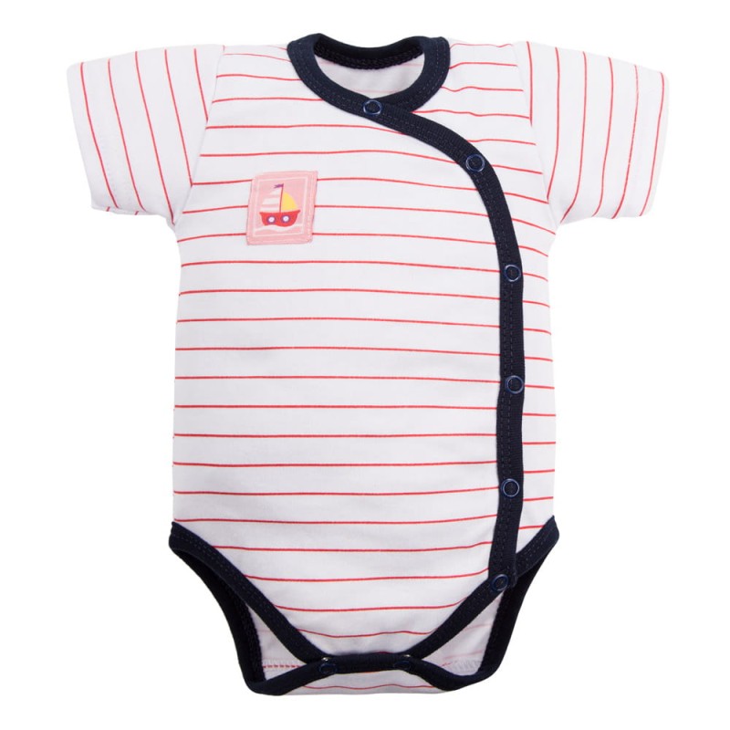 Zavinovací dětské body v proužky s růžovou nášivkou
