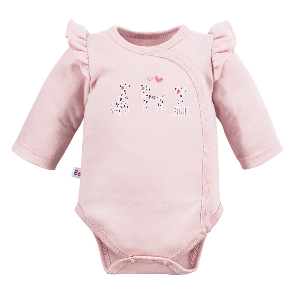 Zavinovací růžové dětské body s motivem pejsků