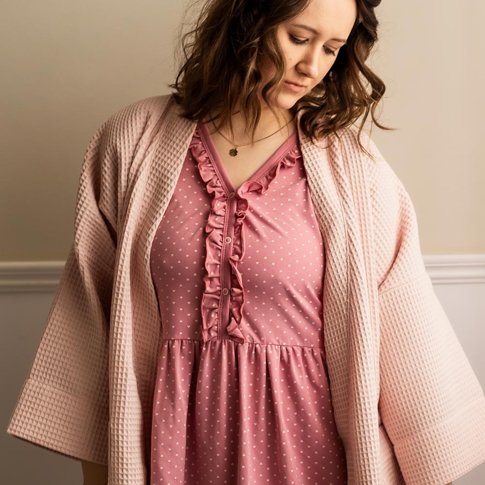 Ženský župan kimono pro ženy z růžového wafle<br>
