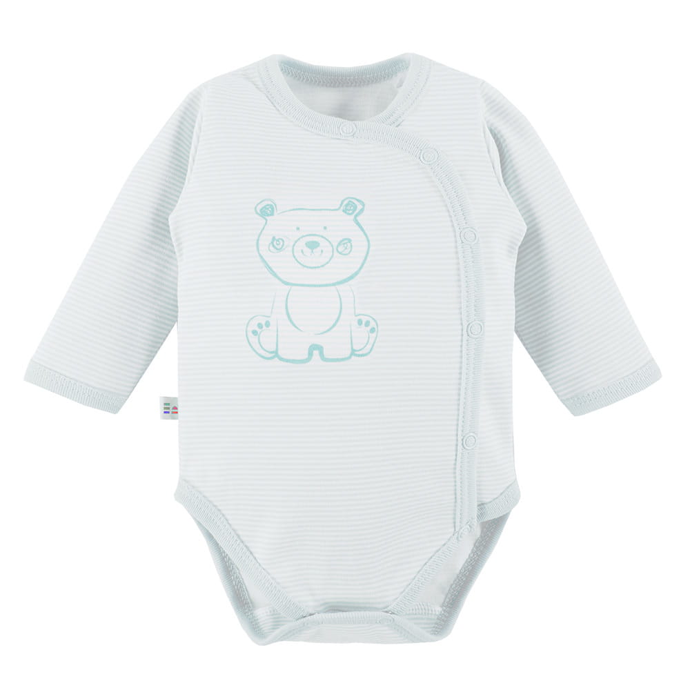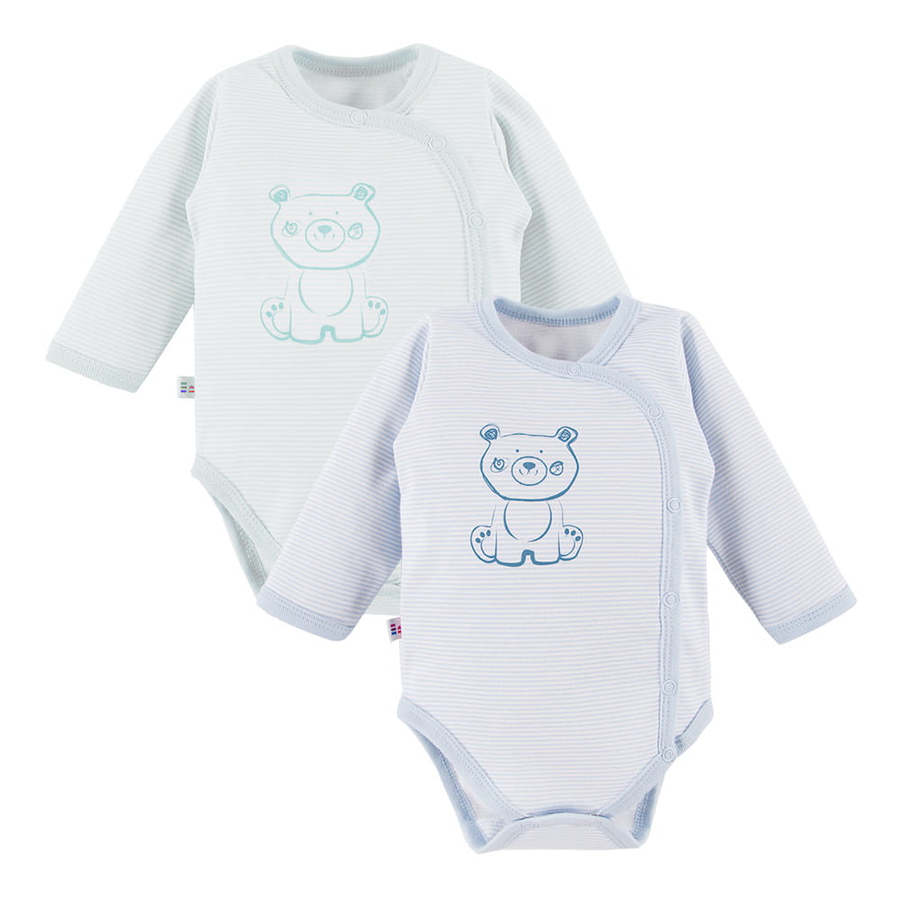 2-pack of baby wrap bodysuits with long sleeves from the Big Bear Collection is a practical and comfortable set for newborns and infants. The pack includes two bodysuits with a cute bear motif – one in blue and the other in mint.