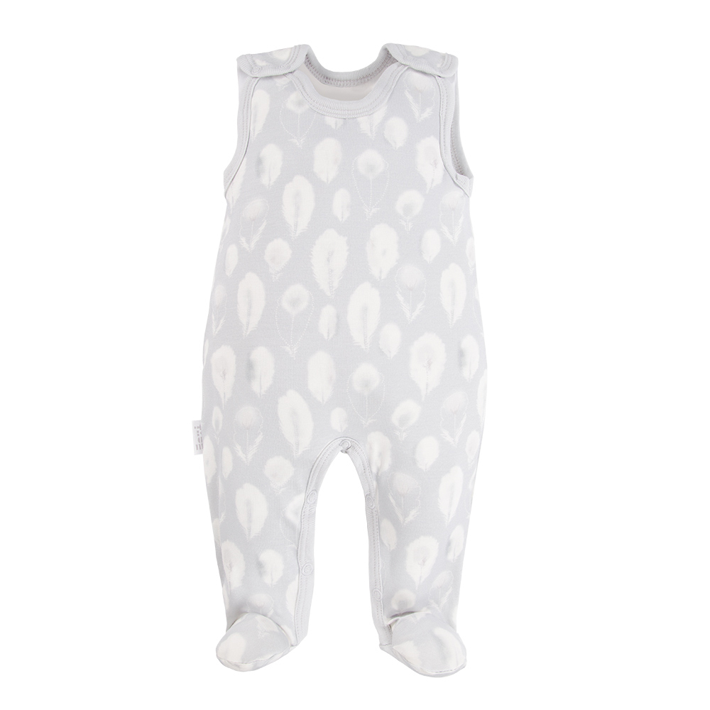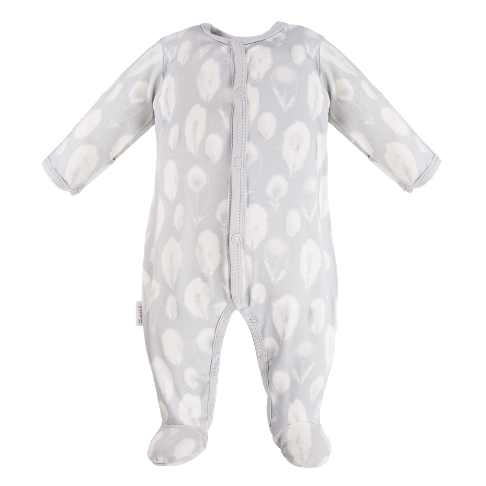 Baby bamboo set sleepsuit, sleep romper, bodysuit, hat and footed pants grey with feathers – Bamboo collection