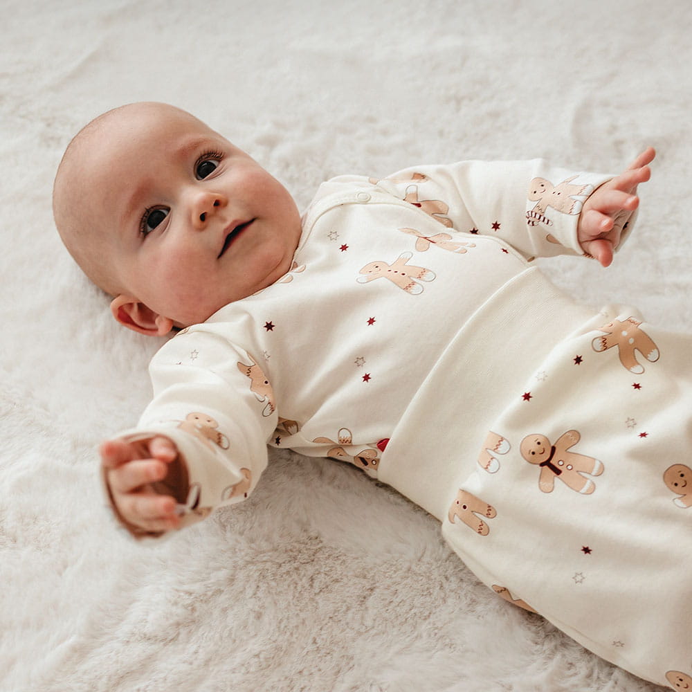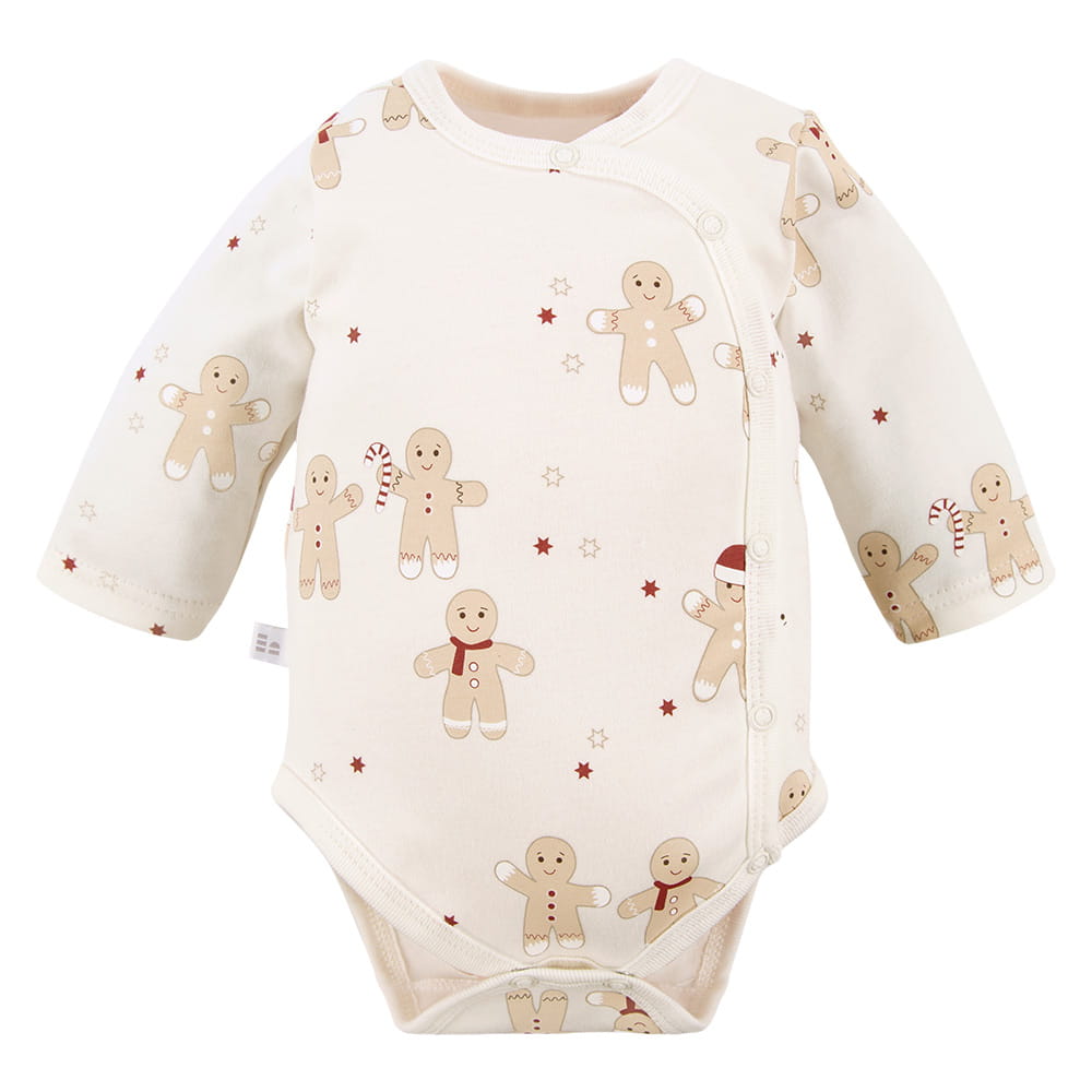 Cardigan bodysuit with Christmas gingerbread and star pattern ecru