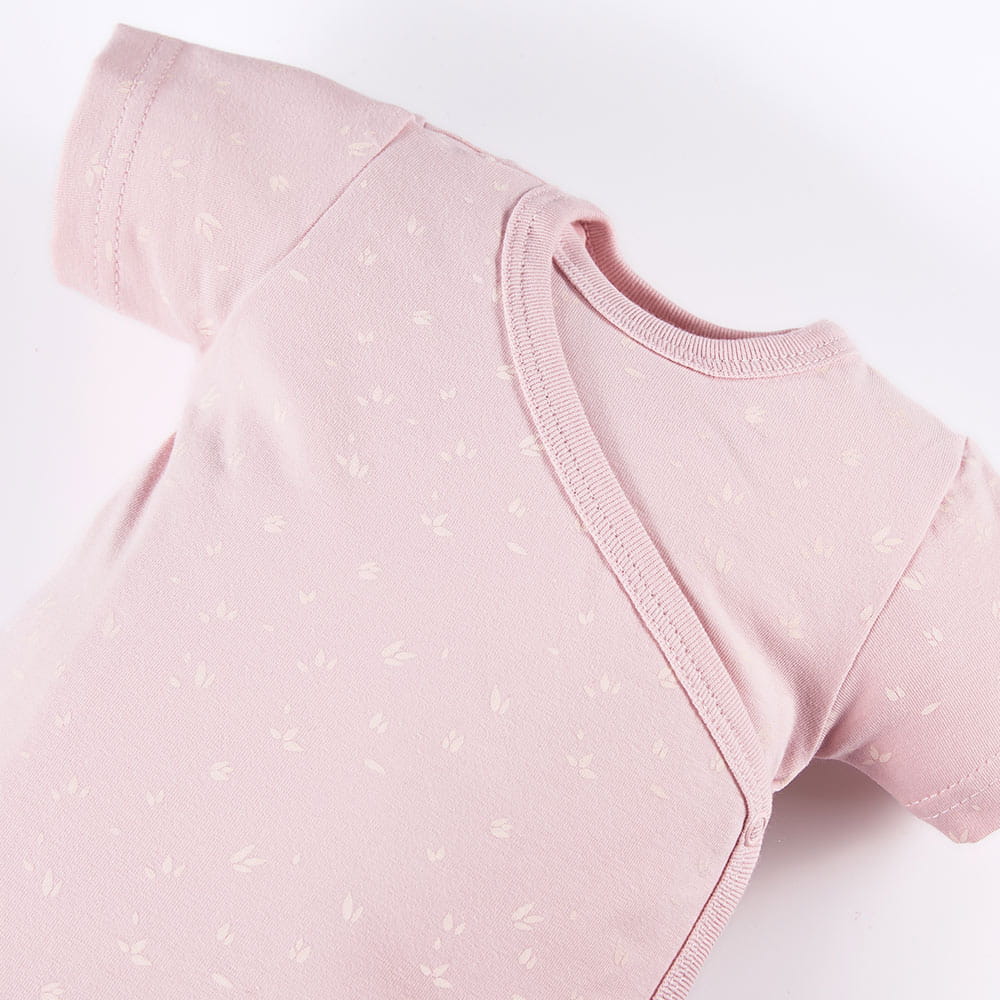 Pink wrap baby bodysuit with short sleeves and a delicate floral pattern from the Petite collection is a practical and essential part of every baby’s wardrobe. The subtle design gives the bodysuit a charming and girly character.